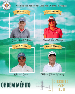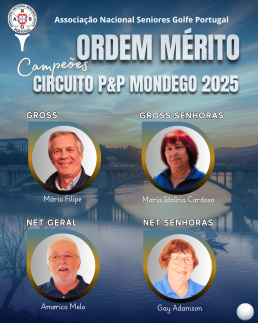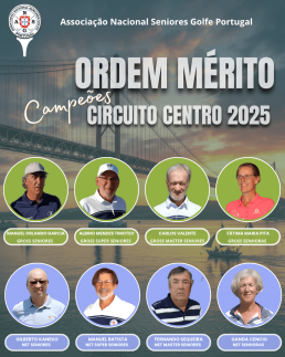 A Associação Nacional Seniores Golfe Portugal felicita os vencedores da Ordem de Mérito P&P Circuito Mondego 2025: