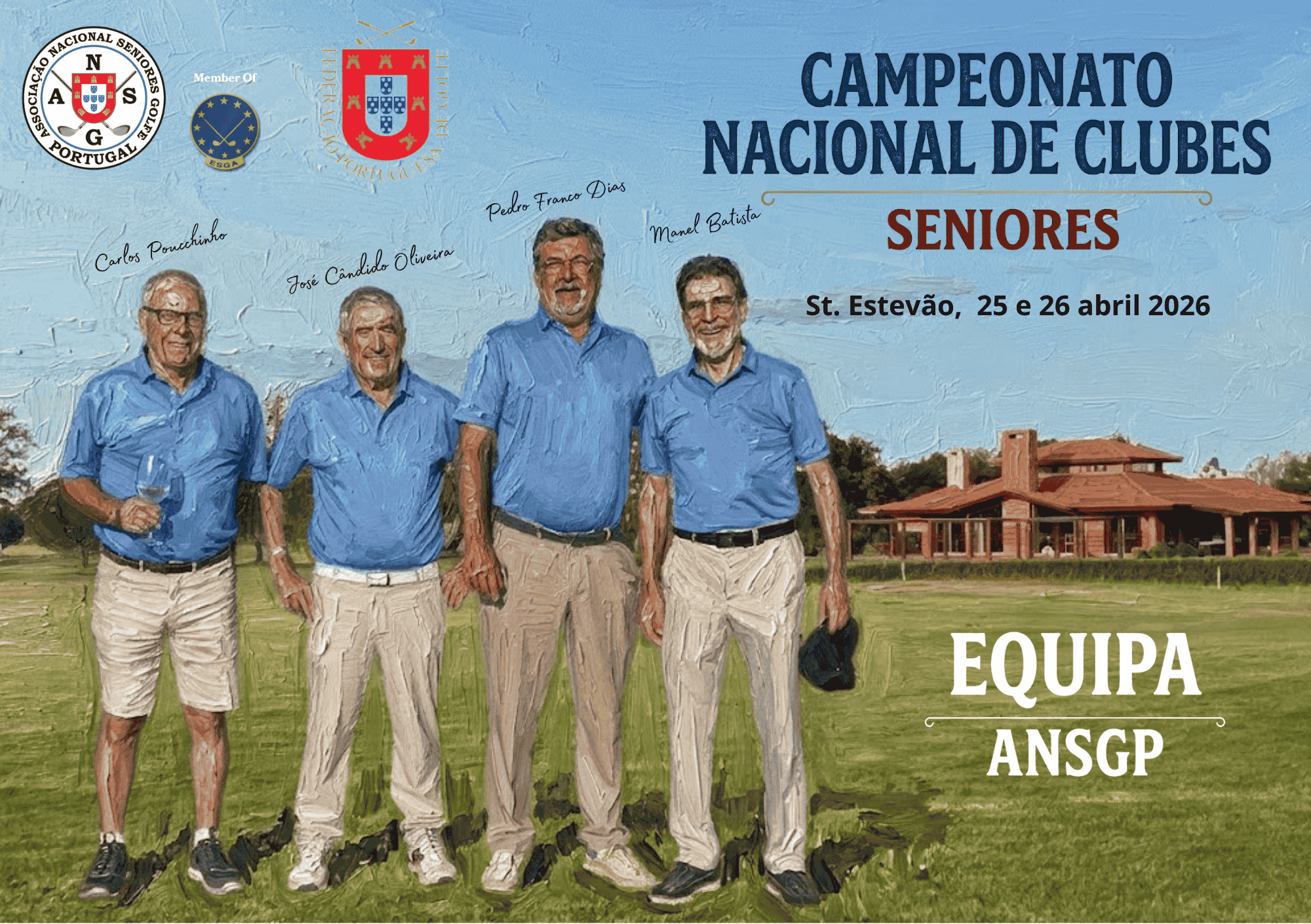 A equipa da Associação Nacional Seniores Golfe Portugal marcou presença no Campeonato Nacional de Clubes – Seniores, disputado nos dias 25 e 26 de abril, no Campo de St. Estevão, numa competição que reuniu 20 equipas de várias regiões do país.