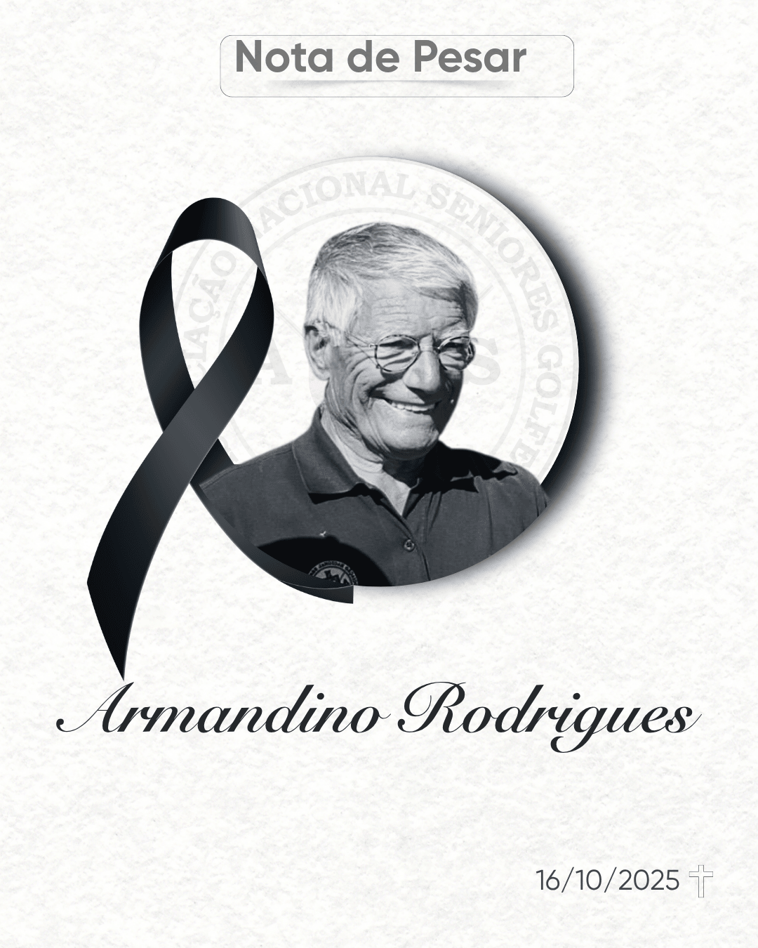 A Associação Nacional de Seniores de Golfe de Portugal informa, com profundo pesar, o falecimento do nosso associado e Amigo Armandino Rodrigues, ocorrido no dia 16 de outubro de 2025.