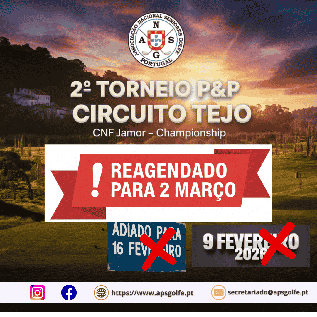 Voltamos a informar que somos obrigados a reagendar o 2º Torneio P&P Circuito Tejo, que estava marcado para o dia 12 de fevereiro, no Jamor, passando agora para o dia 2 de março.