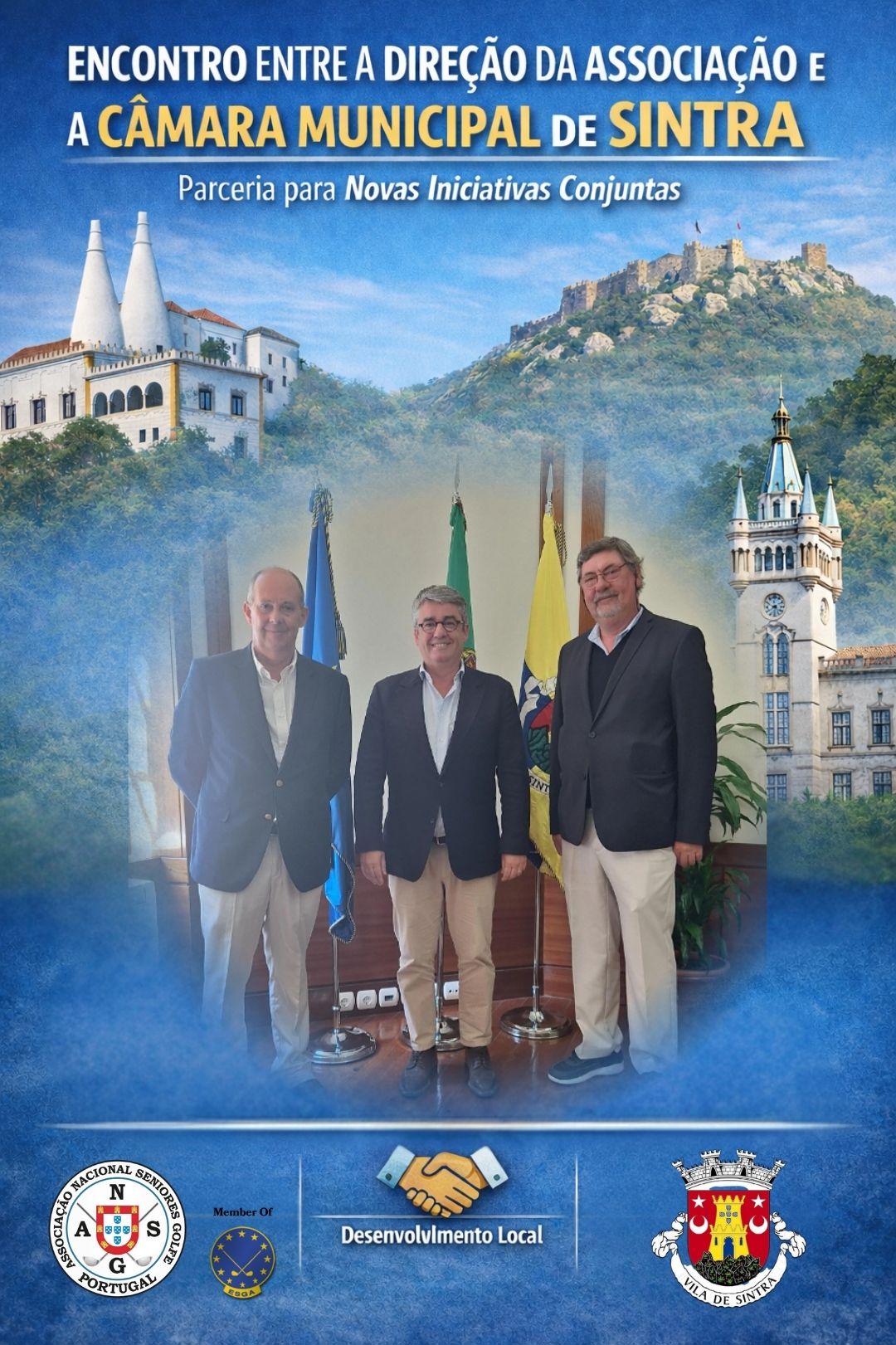 Realizou-se a semana passada a 1ª reunião entre a Associação Nacional Seniores de Golfe de Portugal e a Câmara Municipal de Sintra, num encontro que marcou o início de uma nova etapa de proximidade e colaboração entre as duas instituições.